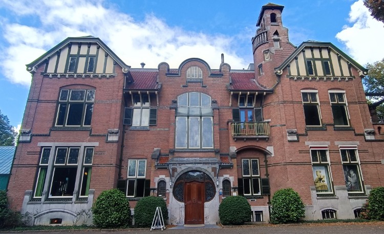 De schatrijke familie Tromp Meesters die hier begin deze eeuw woonde heeft dit huis in Art Nouveau stijl laten bouwen en alles in het huis ademt die sfeer uit. Gelukkig is hier veel van bewaard gebleven of inmiddels weer gerestaureerd.
