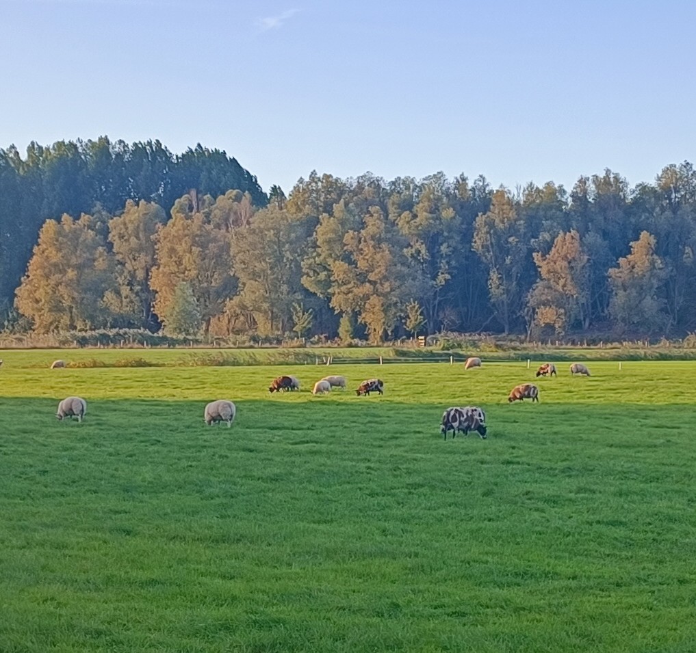 Daarna is het tijd om weer terug te fietsen naar de camper. Onderweg zien we aan de natte straat dat het geregend heeft, zelf hebben we daar gelukkig geen last van (gehad). Bij de camper zitten we nog even buiten in het najaar zonnetje. We boffen deze week met het weer, hoewel het ’s avonds en ’s nachts goed fris/koud is. Ons hoor je niet klagen.