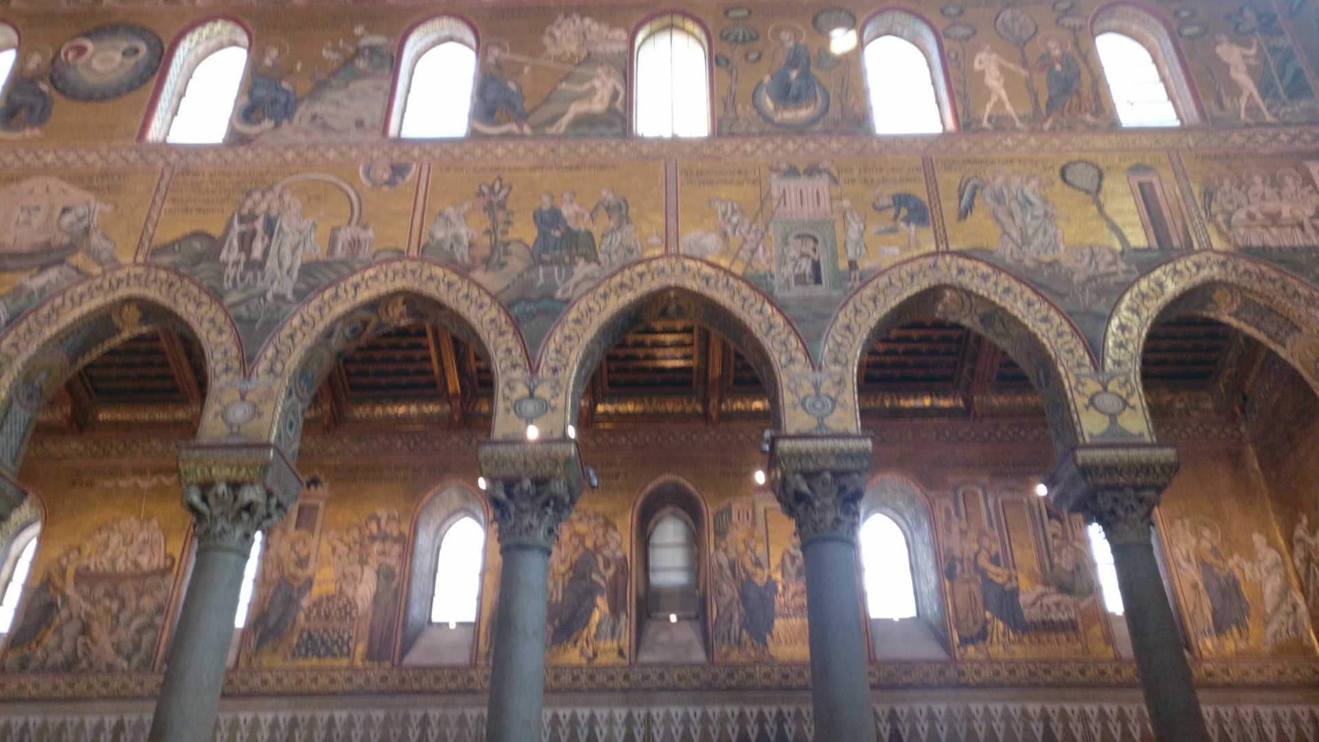 Daarna lopen we nog langs allerlei mooie gebouwen in Palermo. Omdat we gisteren en de andere dagen al veel bezocht en bekeken hebben, gaan we niet meer overal naar binnen en beperken we ons tot de buitenkant, met uitzondering van de dom die we wel even binnengaan.