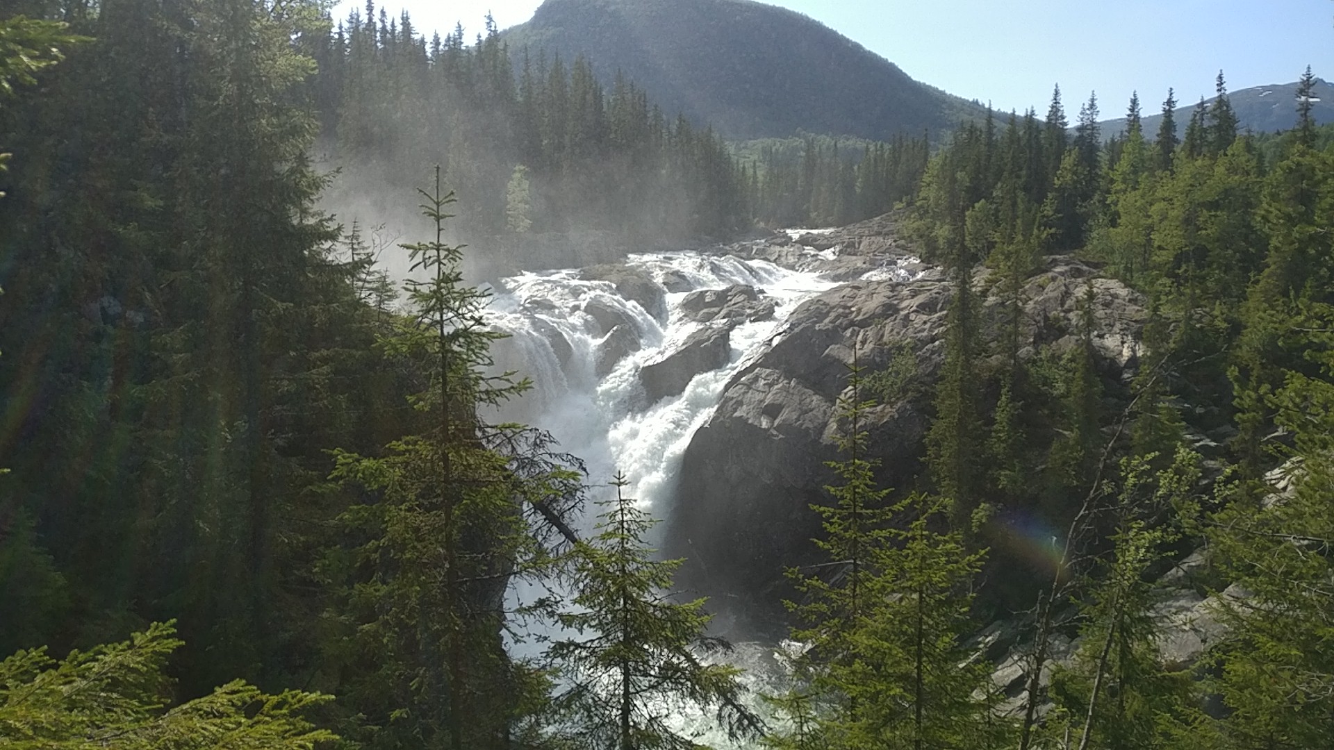 Na de waterval rijden we een klein stukje naar het beginpunt van onze wandeling van vandaag, een van de top20 bergen hier rond Hemsedal, de Karisetberget.